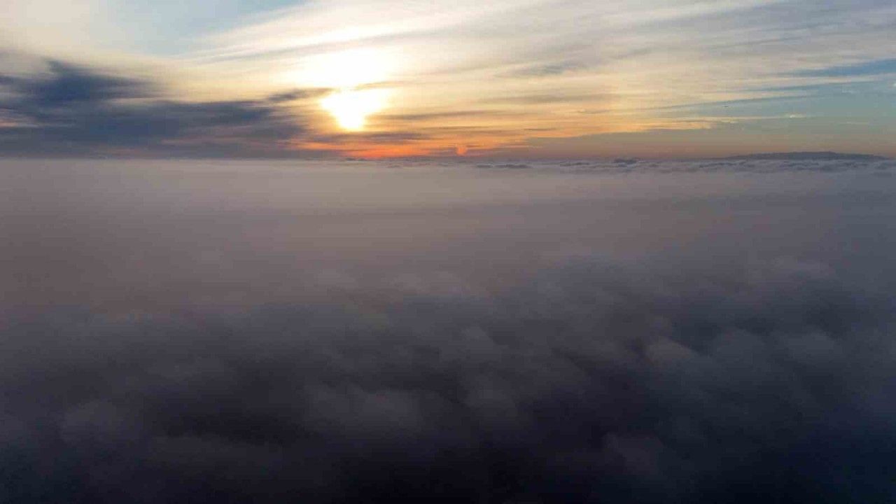 İstanbul’da etkili olan yoğun sis, bulutların üzerine gün doğumuyla havadan görüntülendi. Pamuk tarlasını andıran bulut denizi arasından süzülen güneş ışıklarının eşsiz manzaraları kartpostallık manzaralar oluştururken, Uludağ çekilen görüntülere yansıdı.