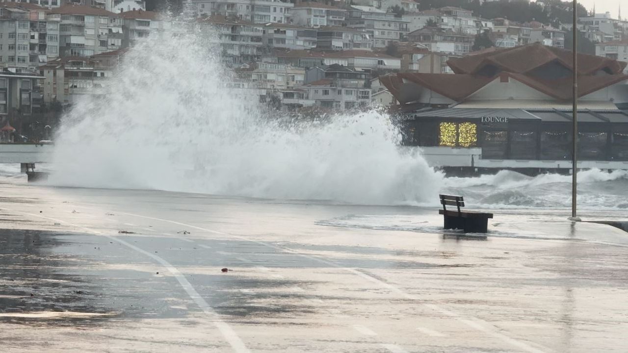 İstanbul'da yapılan uyarıların ardından lodos etkili oldu. Büyükçekmece sahilinde dev dalgalar kıyıya vurdu