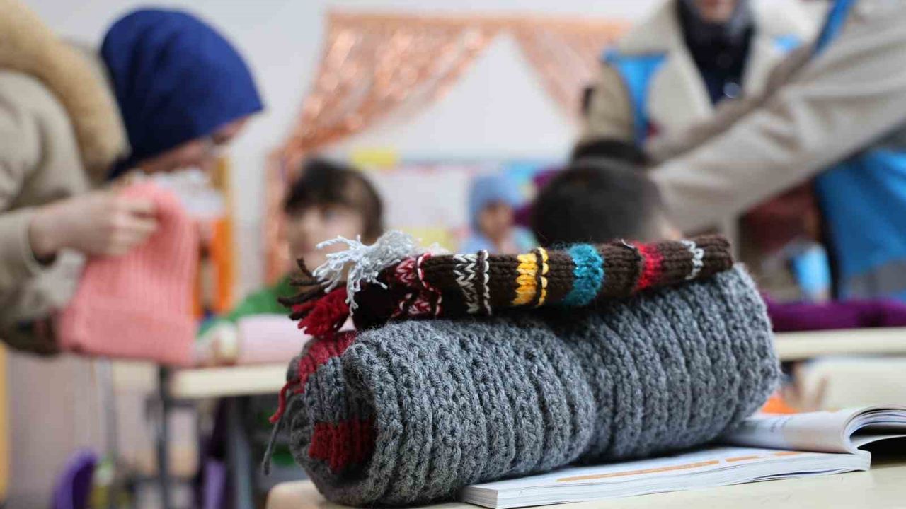 Kredi ve Yurtlar Genel Müdürlüğü tarafından hayata geçirilen 'Isıtan Eller' projesi kapsamında İstanbul'dan gönderilen atkı, bere, eldiven, kalemlik ve tişörtler, Elazığ'da ilkokul öğrencilerine ulaştırıldı.