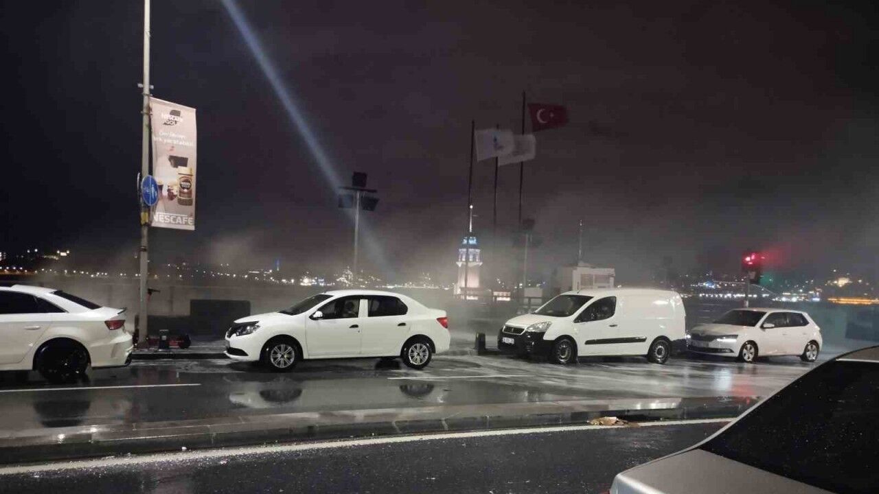 İstanbul’da etkili olan kuvvetli fırtına sebebiyle Üsküdar sahilde dev dalgalar oluştu.