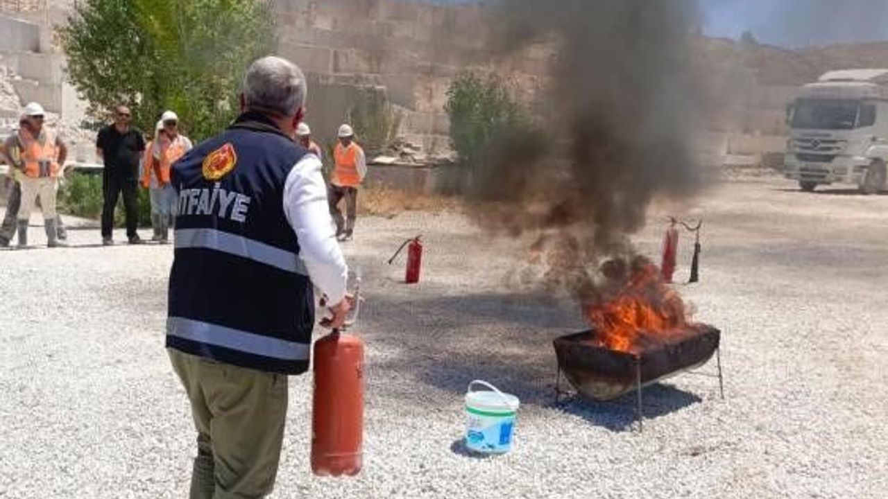 Bilecik’in Söğüt ilçesinde bir mermer fabrikası çalışanlarına uygulamalı yangın eğitimi verildi.
