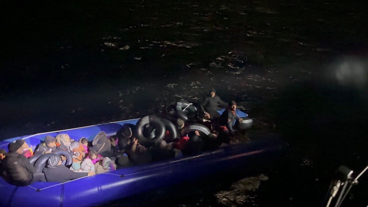 İzmir’in Foça ilçesinde, motor arızası sebebiyle sürüklenen lastik bot içerisinde bulunan 11 düzensiz göçmen kurtarılırken, yasa dışı yollarla yurt dışına çıkmak isteyen 34 düzensiz göçmen yakalandı.