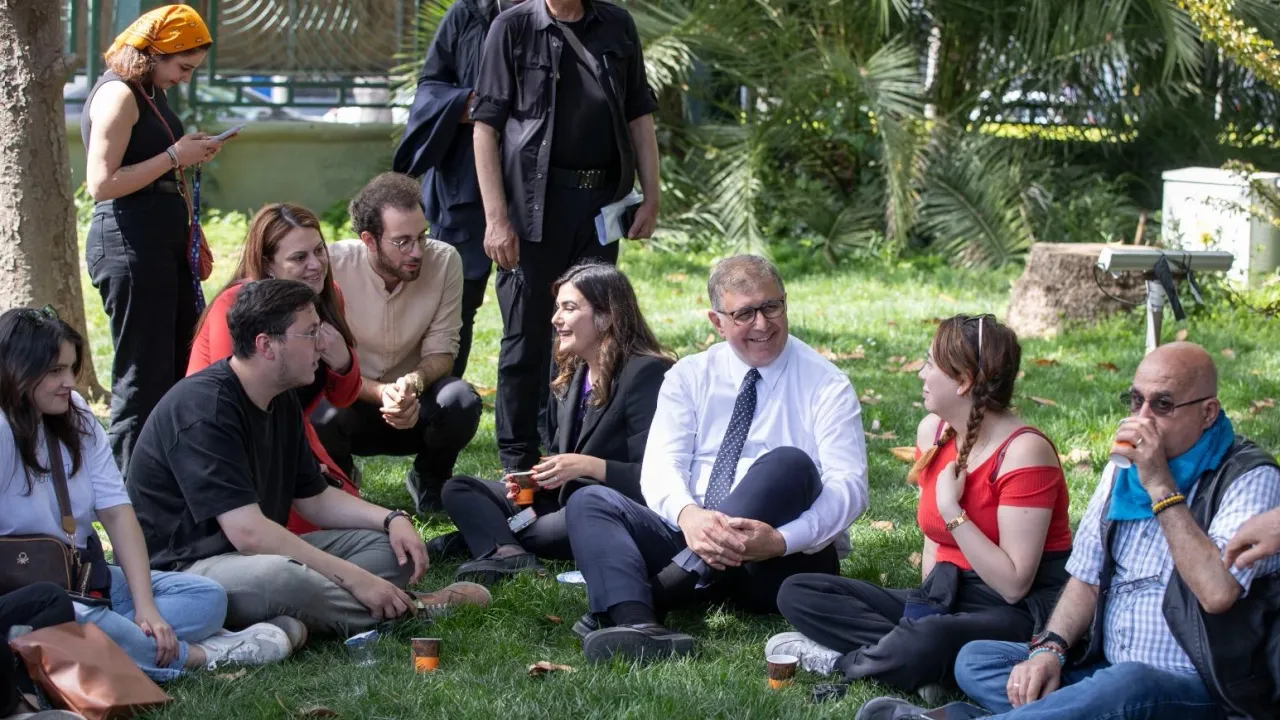 Kültürpark Lozan Kapısı’nın iç bölümünde bulunan alanda gençlerle oturan Başkan Dr. Cemil Tugay, uzun bir sohbet gerçekleştirdi.
