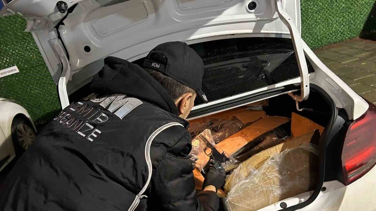 Edinilen bilgiye göre; İzmir Organize Suçlarla Mücadele Şube Müdürlüğü, Kaçakçılık Suçlarıyla Mücadele Şube Müdürlüğü ve İstihbarat Şube Müdürlüğü ekipleri, yapılan çalışmalar neticesinde M.E. ve B.A. kontrolündeki iki aracın iller arası şüpheli seyirlerini tespit etti.