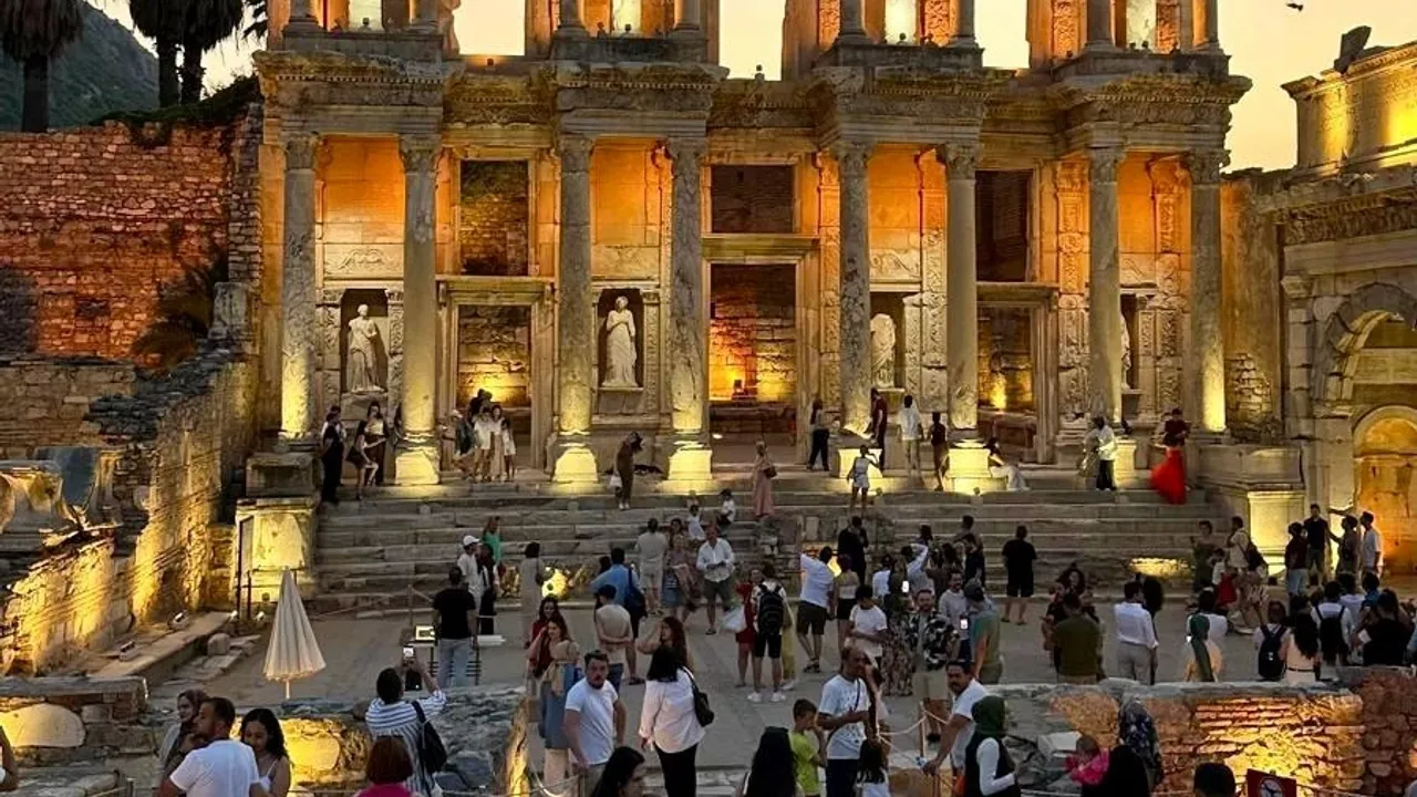 İzmir Büyükşehir Belediyesi’nin “Gençler İzmir’i Geziyor” projesi kapsamında düzenlendiği ücretsiz Efes Gece Müzeciliği etkinliği gençlere tarihle iç içe unutulmaz bir deneyim yaşattı. İZMİR (İGFA) - İzmir Büyükşehir Belediyesi, İzmir Büyükşehir Belediye Başkanı Dr. Cemil Tugay’ın “Genç Dostu Kent” hedefi doğrultusunda gençleri kentin tarihi ve kültürel değerleriyle buluşturmaya devam ediyor. Gençlik ve Spor Hizmetleri Dairesi Başkanlığı Gençlik Çalışmaları Müdürlüğü koordinasyonunda, Genç İzmir çatısı altında ücretsiz olarak düzenlenen Efes Gece Müzeciliği etkinliği de yoğun ilgi gördü. “Gençler İzmir’i Geziyor” projesi kapsamında yaz döneminin ilk etkinliğinde 80 genç, rehberler eşliğinde Ayasuluk Tepesi, St. Jean Anıtı, İsa Bey Camii ve Efes Antik Kenti’ni gece atmosferinde gezerek tarihle iç içe unutulmaz bir deneyim yaşadı. Gençler gece aydınlatmaları altında yapılan gezide bölgenin binlerce yıllık tarihine tanıklık etti.