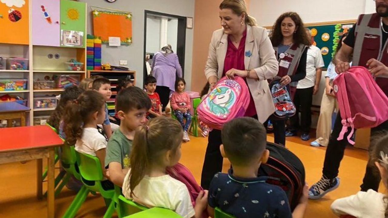 Başkan Hürriyet, Sosyal Destek Hizmetleri Müdürlüğü tarafından hazırlanan sırt çantalarını ve kırtasiye malzemelerini öğrencilere hediye ediyor. Başkan Hürriyet son olarak Fevzi Çakmak İlkokulu ve Leyla Atakan İlkokulu’ndaki anasınıfı öğrencilerine hediyelerini takdim etti.