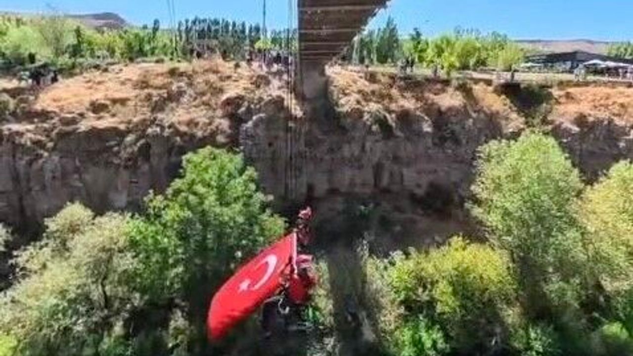 Van İl Jandarma Komutanlığına bağlı JAK timi, 29 Ekim Cumhuriyet Bayramı dolayısıyla Muradiye Şelalesi Köprüsü’nde Türk bayrağı açtı.