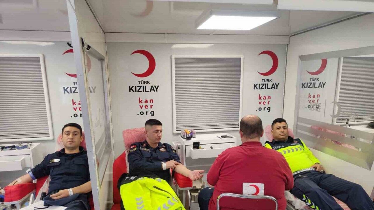 Yozgat’ta kan bağışının önemini vurgulamak amacıyla Jandarma ekipleri kan bağışı yaptı.