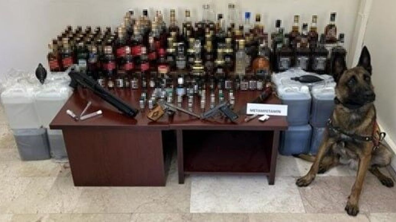 Bolu’da jandarma ekipleri tarafından şüpheli durumdaki eve yapılan operasyonda 165 litre sahte alkol, 2 adet ruhsatsız tabanca, 0,5 gram metamfetamin ile birlikte sahte alkol yapımında kullanılan 10 şişe kit ve 10 litre etil alkol ele geçirildi.