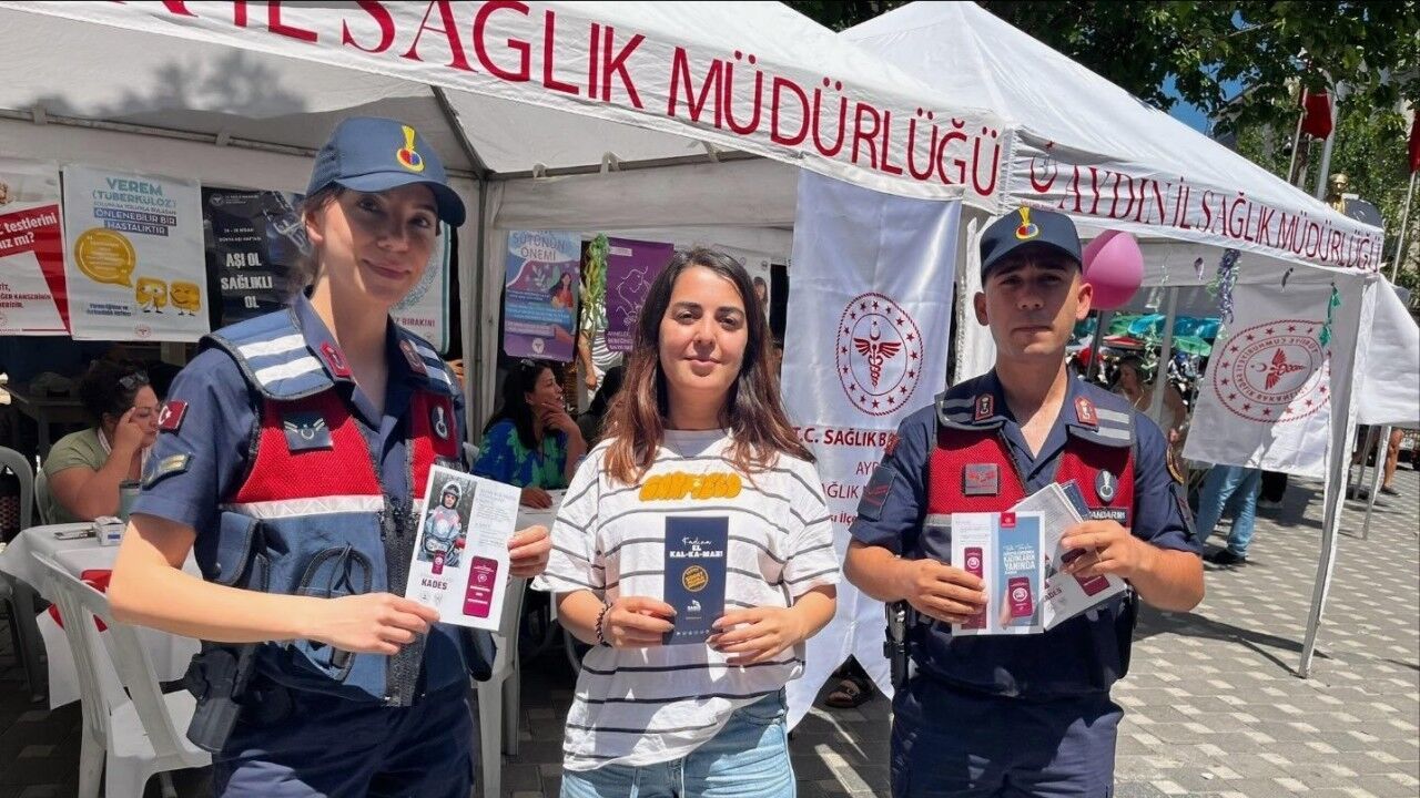 Aydın’ın Kuşadası ilçesinde stant açan jandarma ekipleri hem teşkilatı tanıttı hem de kadın ziyaretçilere KADES uygulamasını anlattı.