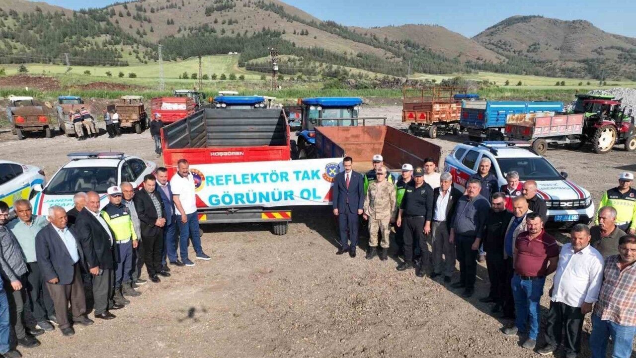 Eğitim sonrası reflektör bulunmayan 150 adet traktör römorkuna reflektör dağıtımı yapılarak römorklara takılması sağlandı.