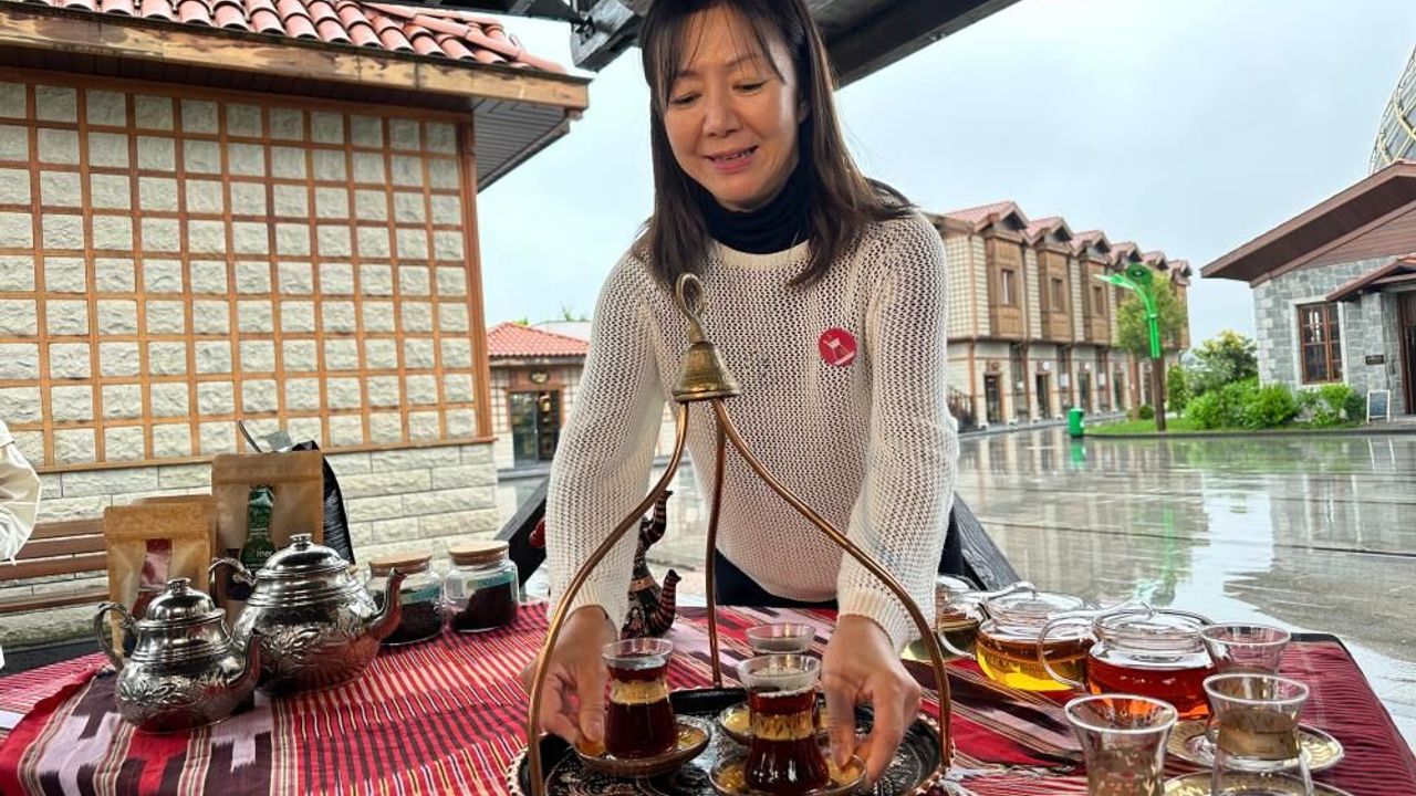 Japonya’da düzenlenen yarışmada ‘Türk Çayı demleme ustası’ seçilen Arita, Rize’de de çay demleyerek katılımcılara ikram etti.