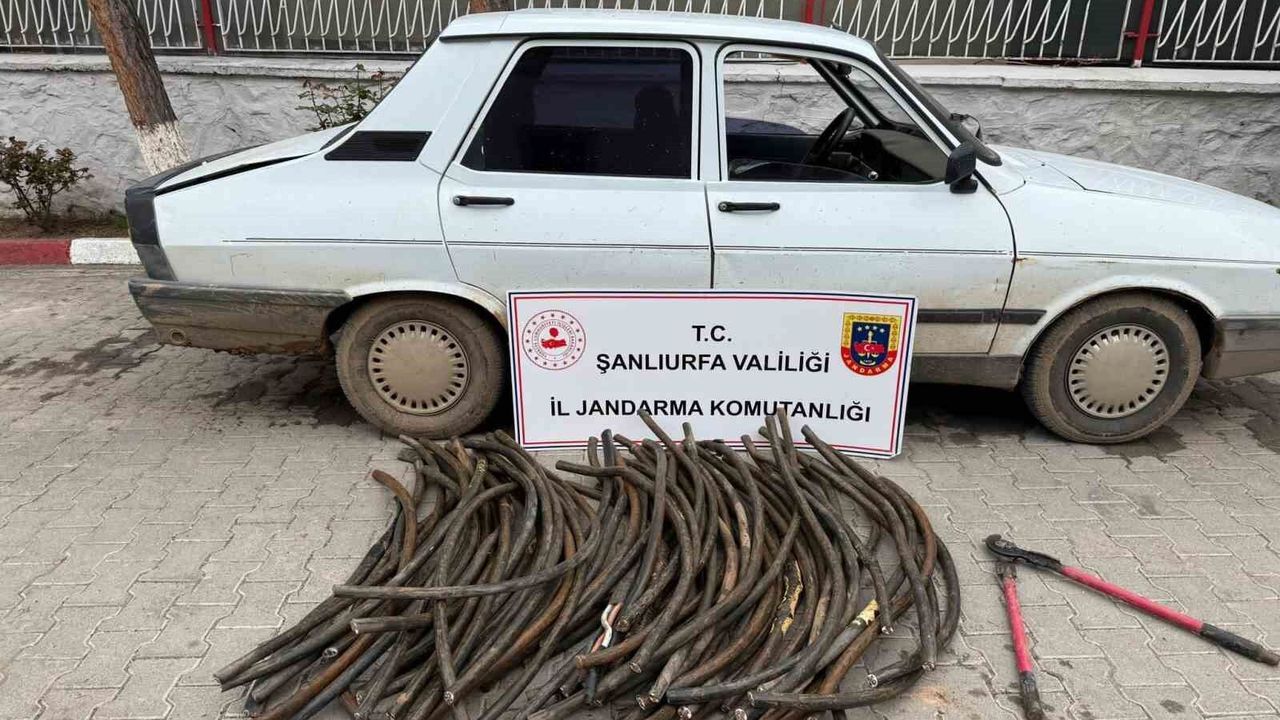 Şanlıurfa'da, Tarım İşletmeleri Genel Müdürlüğü (TİGEM) Ceylanpınar Tarım İşletmesi arazisinde devriye gezen jandarma ekipleri, kablo hırsızlığı yaptığı belirlenen bir şahsı suçüstü yakaladı. Araçta yapılan aramada 69 sulama kuyusundan kesilen kablolar ele geçirildi, Yapılan incelemede zararın kuruma maliyetinin 1 milyon TL'yi aştığı bildirildi.