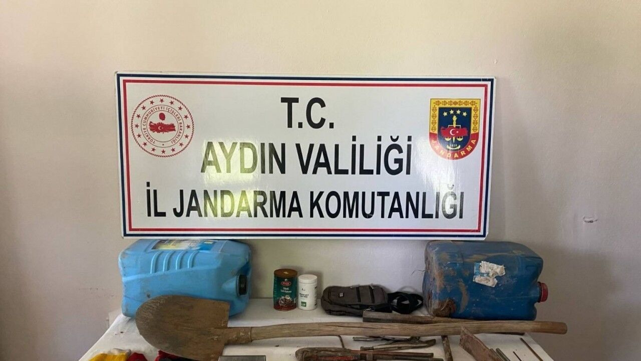 Karacasu İlçe Jandarma Komutanlığınca Kültür ve Tabiat Kanuna Muhalefet suçunu işleyen şahıslara yönelik çalışma gerçekleştirildi. Edinilen bilgiye göre Karacasu ilçesi Geyre Mahallesi’nde birinci derece sit alanı içerisinde bulunan tarlada tarihi eser bulmak amacıyla İ.Ç., B.S., C.A., S.A. ve A.O. isimli şüpheliler kaçak kazı yaptıkları esnada suçüstü yakalandı. Şüphelilerle birlikte ayrıca yapılan aramalarda 1 adet çapa, 1 adet kürek, 4 adet birer adet metre uzunluğunda demir çubuk, 1 adet el bidonu, 1 adet titanyum karışımlı alan tarama çubuğu, 1 adet pirinç karışımlı alan tarama çubuğu, 2 adet bronz yüzük ele geçirildi. Yakalanarak gözaltına alınan şüpheliler hakkında başlatılan adli süreç devam ediyor.