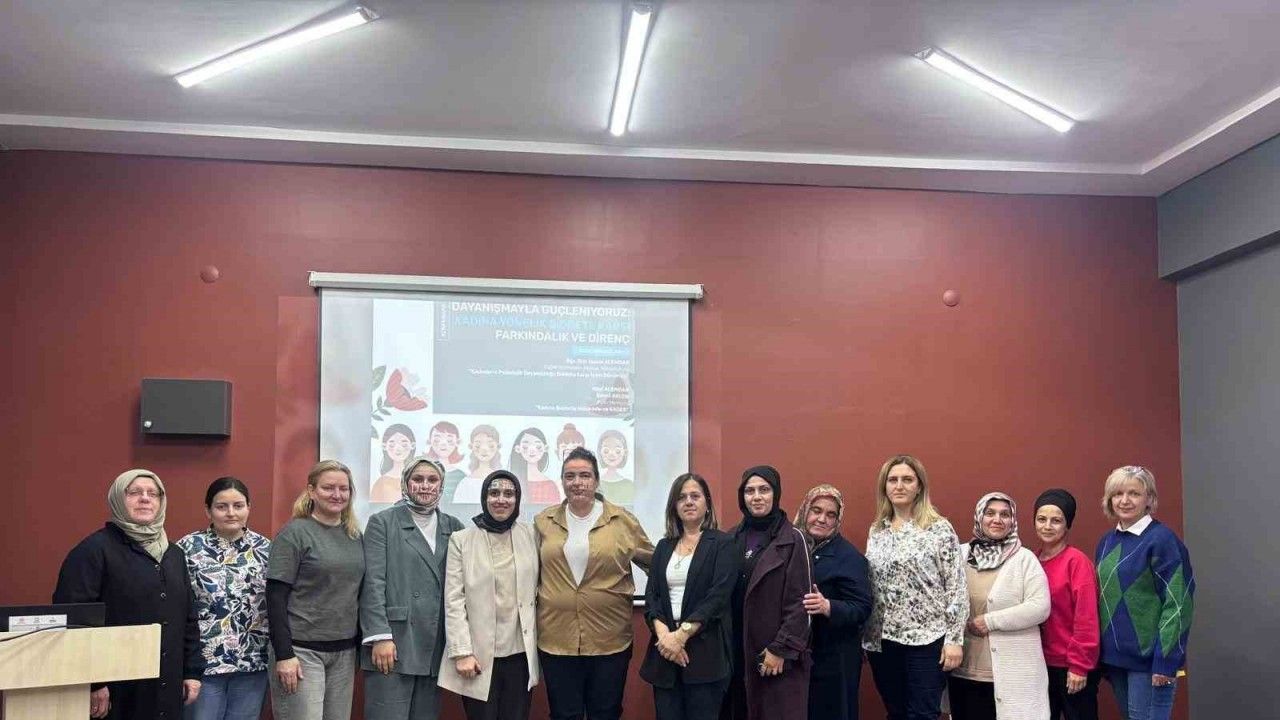 Etkinlikte, Düzce Üniversitesi’nden Öğr. Gör. Dr. Hacer Alemdar, "Kadınların Psikolojik Dayanıklılığı: Şiddete Karşı Dahili Gücümüz" konulu sunumuyla katılımcılara şiddetin psikolojik etkileri, güçlenme stratejileri ve dayanıklılık geliştirme yolları üzerine önemli bilgiler aktardı.