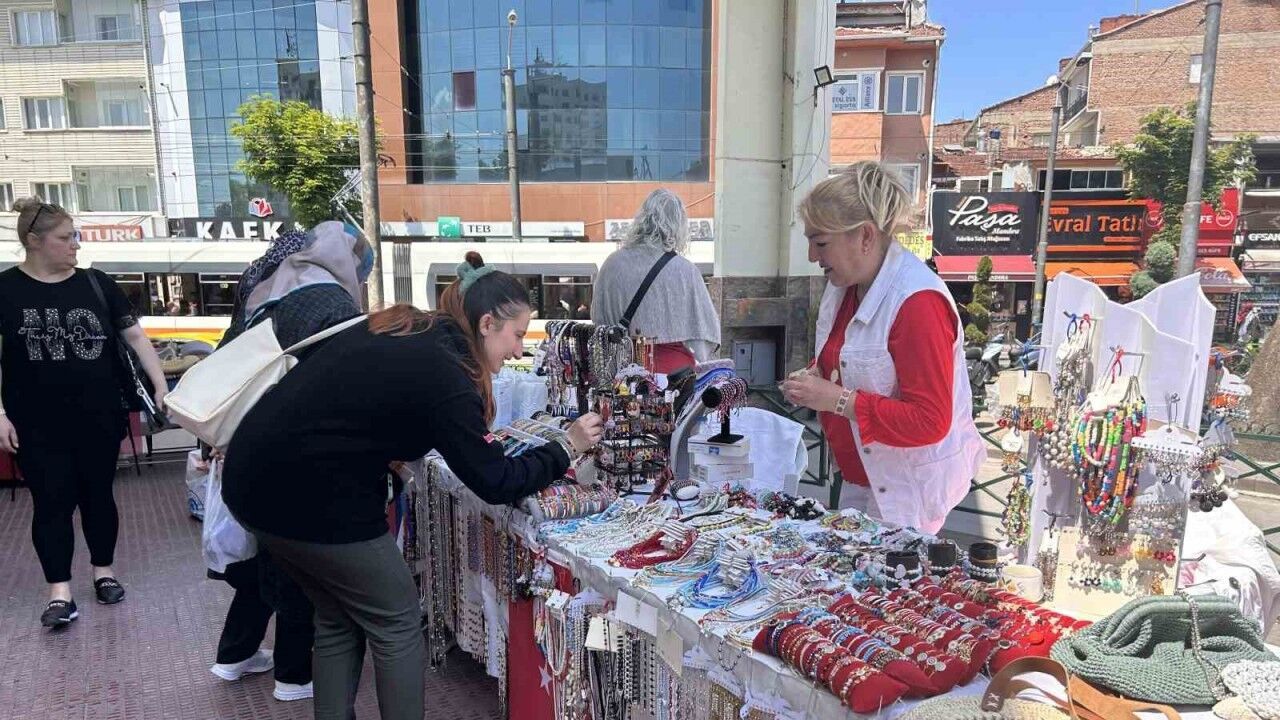 Eskişehir Üreten Kadınlar Platformu’nda el emeği ürünler yapan kadınlar, açtıkları stantlarda yiyecekten takıya, örgüden seramiğe kadar el yapımı ait pek çok ürünü vatandaşlarla buluşturuyor.