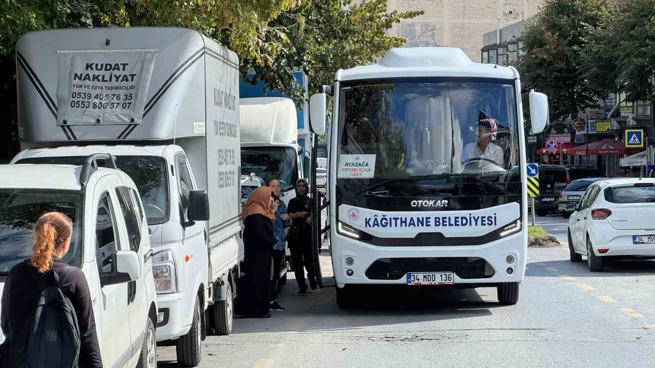 Kağıthane Belediyesi, vatandaşların vefat eden yakınlarını ziyaret edebilmeleri amacıyla her ay düzenli olarak gerçekleştirdiği ücretsiz mezarlık servisi uygulamasını sürdürüyor. Hizmet sayesinde ilçe sakinleri mezarlıklara güvenli ve konforlu bir şekilde ulaşım sağlıyor.