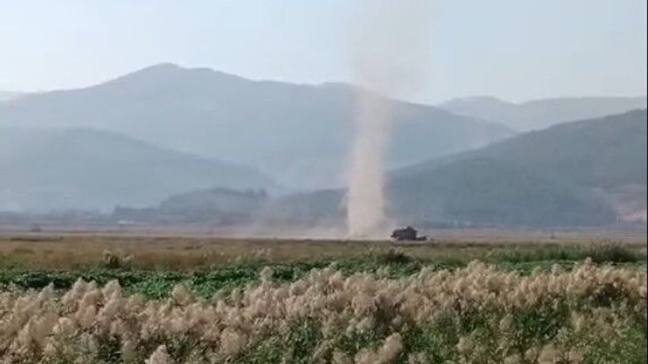 Öğle saatlerinde çiftçilerin mısır ve ak darı hasadı yaptığı sırada çıkan hortumlar nedeniyle çiftçiler zor anlar yaşadı. Hortumu gören çiftçiler kısa süreliğine paniklerken, çıkan hortum cep telefonlarıyla görüntülendi.