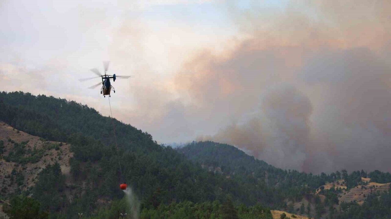 Kahramanmaraş’ta çıkan orman yangınına ekiplerin havadan ve karadan müdahalesi sürüyor.