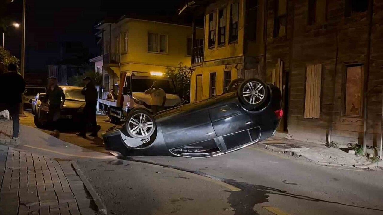 Bartın’da kontrolden çıkan bir otomobil takla attı. Araçta bulunan 2 kişi yara almadan kurtulurken, polis aracın sürücüsünü tespit etmeye çalışıyor.