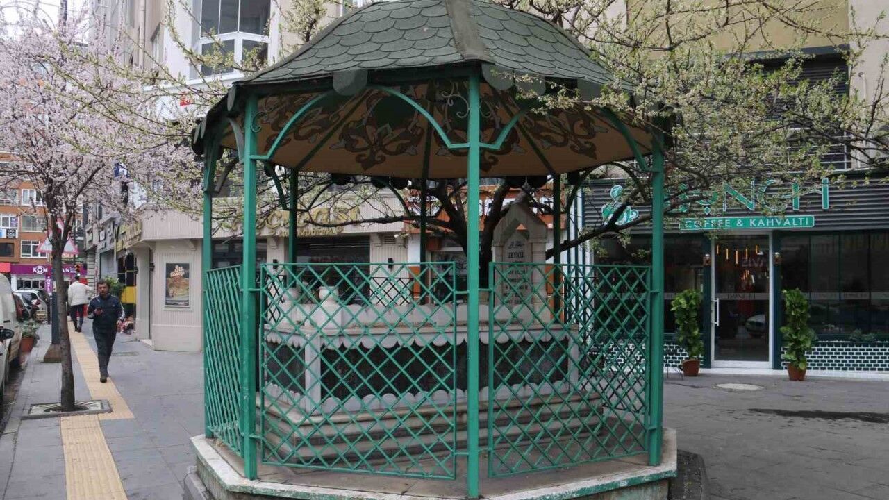 Sivas’ta kaldırımın ortasındaki türbe görenlerin dikkatini çekiyor.