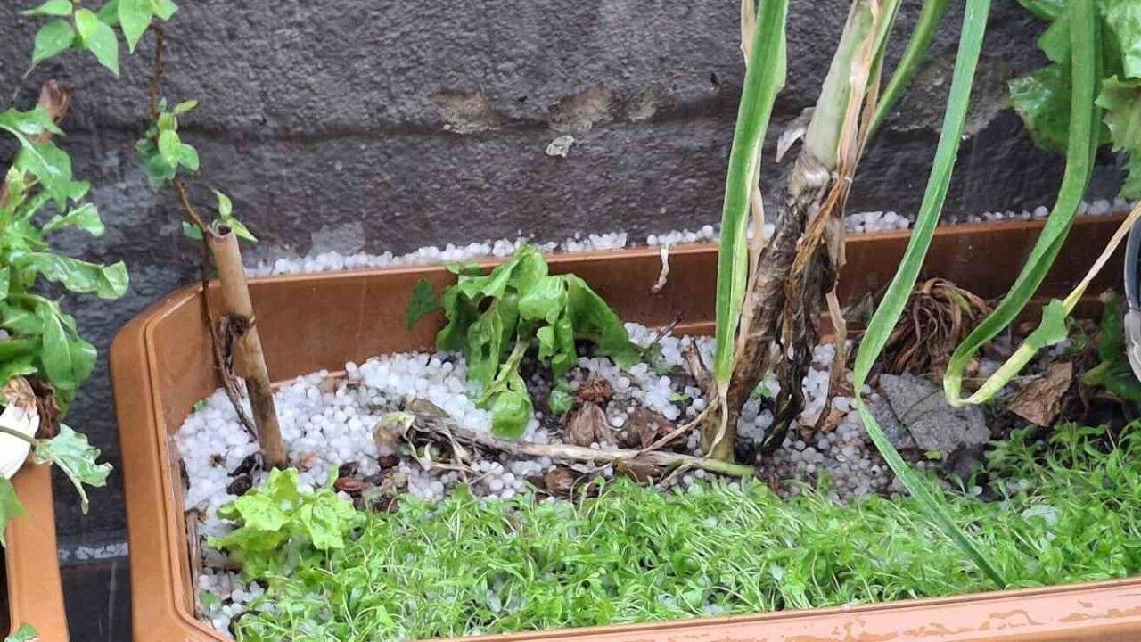 Denizli’nin Kale ilçesinde etkisini gösteren dolu yağışı sonrası yer yer birikintiler oluştu.
