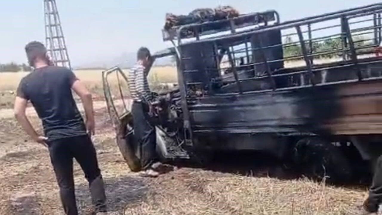 Adana’da saman balyası toplamak için tarlaya sokulan kamyonet, lastik kısmından alev alarak küle döndü.