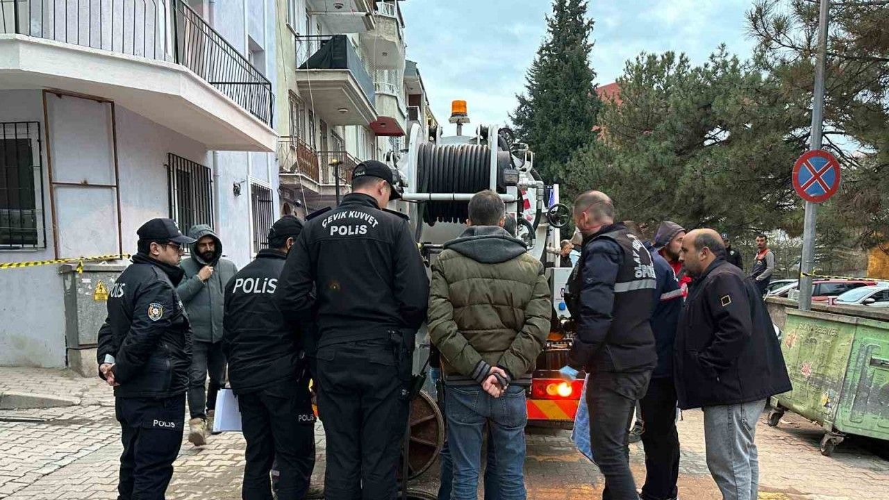 Uşak’ta belediye ekipleri kanalizasyonda oluşan tıkanıklığı açmak için çalışma yaptığı sırada kanalizasyon içerisinde cenin bulundu.