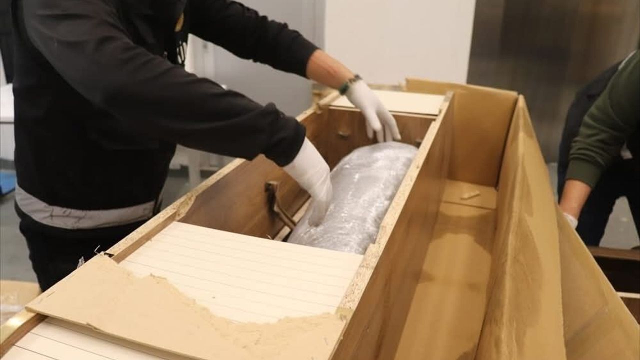 96 kilo 796 gram uyuşturucuyu televizyon ünitesine gizlemişler