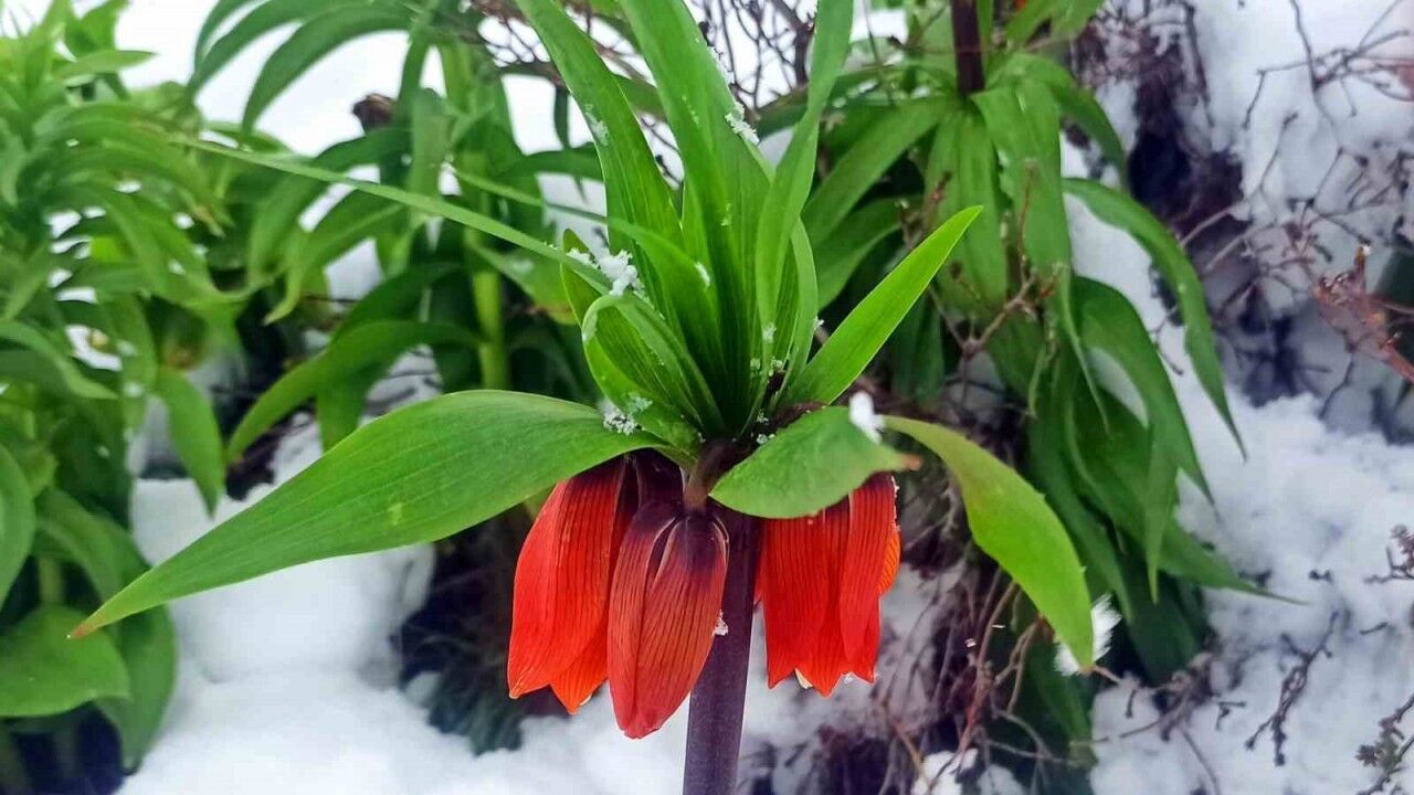 Bitlis’in dağlarında baharın habercisi olarak bilinen ve halk arasında "Ağlayan Gelin" olarak adlandırılan ters laleler, karla kaplı doğada eşsiz manzaralar oluşturdu.
