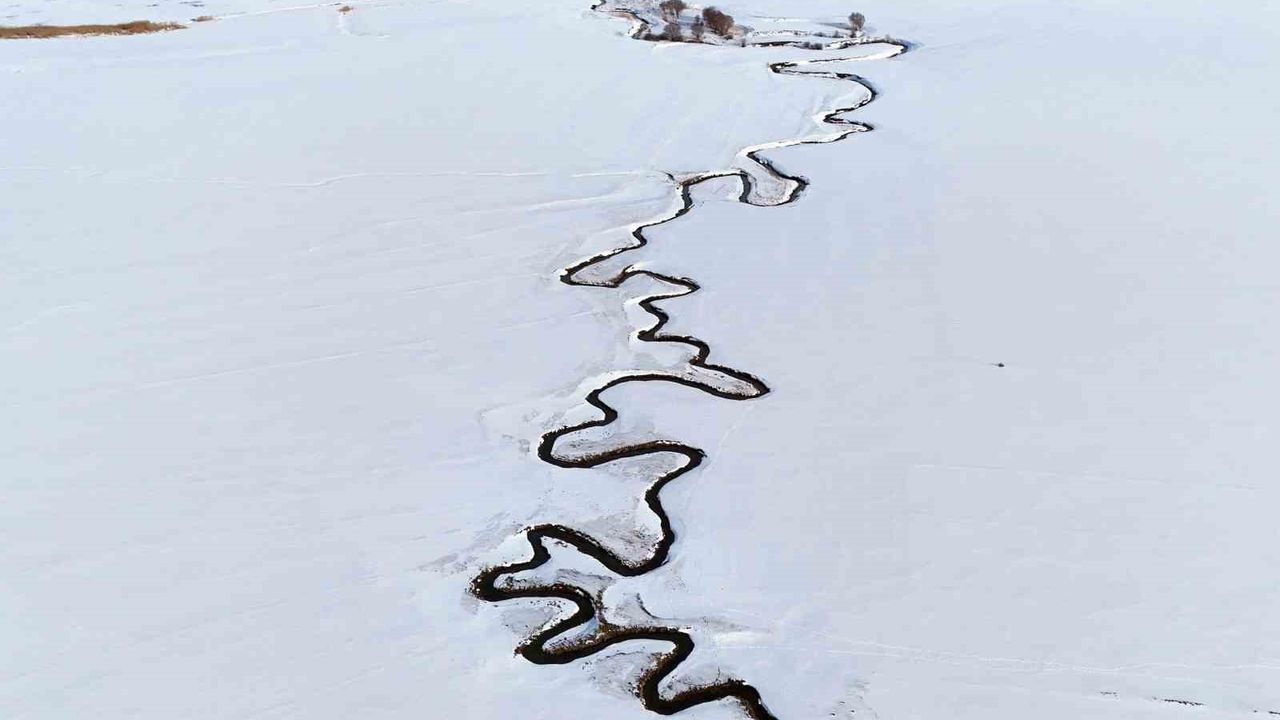 Bitlis'te Ahlat ilçesinde bulunan Nazik Köyü Menderesleri, kar örtüsü altında güzel görüntüler oluşturuyor.