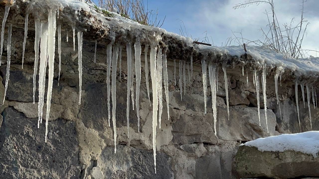 Kış mevsimin en sert geçtiği illerin başında gelen Ağrı’da, bu yıl kar yağışının az olmasına rağmen kentte don yaşanıyor. Yerlerde buz tabakalarının oluştuğu kentte, bitkiler de buzla kaplandı. Kent merkezinin üzerini kaplayan sis bulutu nedeniyle trafikte görüş mesafesi düştü.