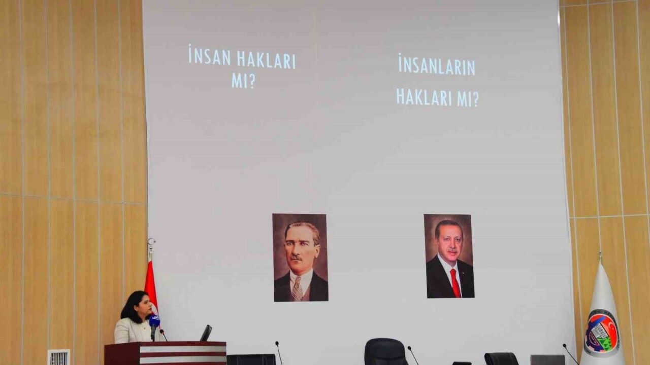 Konferansta insan hakkı bilincinin yerleşmesi, geçirdiği tarihi süreç, insan onuru kavramı, İnsan Hakları Evrensel Beyannamesi ve tüm süreçler eşliğinde ülkede insan hakları konu başlıkları ile ilgili bilgilendirme yapıldı.