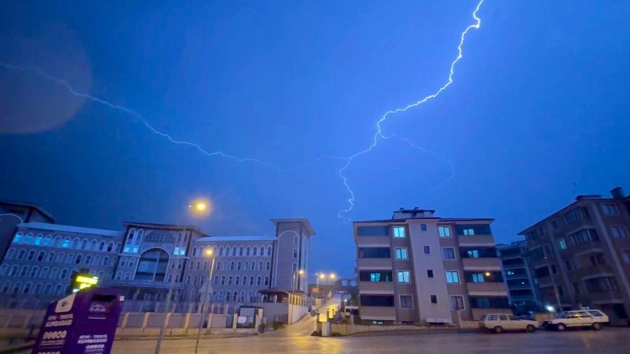 Karabük'te gece saatlerinde başlayan gök gürültülü sağanak yağmur, öncesinde oluşan şimşekler kentin üzerinde adeta görsel şölen oluşturdu.