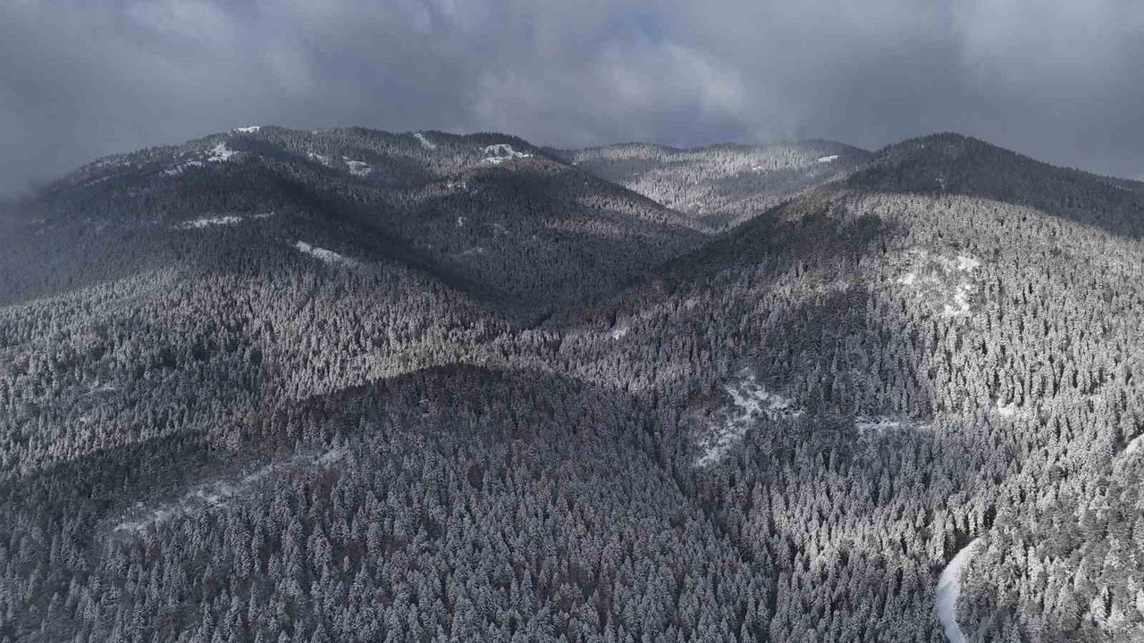 Kar yağışıyla birlikte Safranbolu'daki tarihi konakların çatıları beyaz örtüyle kaplanırken, Safranbolu-Bartın kara yolu 1030 rakımlı Ahmetusta mevkisinde de kar etkili oldu. Sabah saatlerinde yoğunlaşan kar sonrası bazı araçlar yolda kalırken, karayolları ekipleri kar küreme çalışmalarını sürdürüyor. Bölgedeki karla kaplı alanlar dron ile görüntülendi.