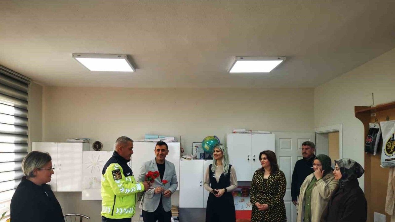 Karacabey İlçe Jandarma Komutanlığı’na bağlı trafik jandarması ekipleri, 24 Kasım Öğretmenler Günü dolayısıyla anlamlı ve bir o kadar da değerli bir etkinliğe imza attı. İlçedeki dört okulu ziyaret ederek öğretmenlere karanfil dağıttı.