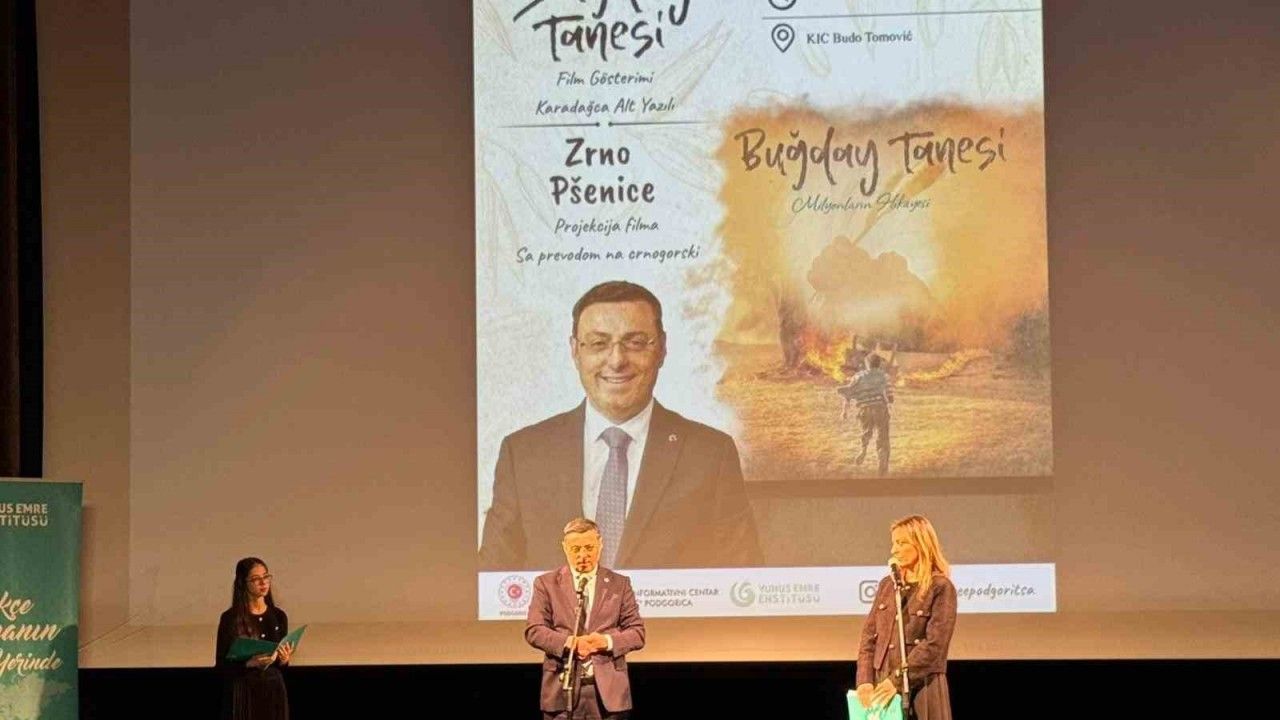 Buğday tarlasında çıkan yangında vücudunun büyük bölümünde yanıklar oluşan ve ellerini kaybeden AK Parti İstanbul Milletvekili Serkan Bayram’ın hayatını konu alan ‘Buğday Tanesi’ filminin gösterimi Podgoritsa’da yapıldı.
