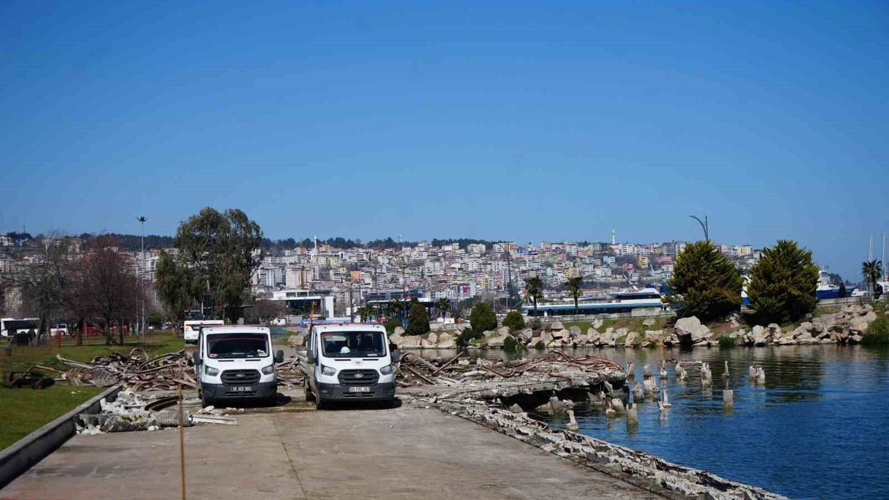 Samsun Valiliği Meydanı, Kurtuluş Yolu ve Astorya(uçan sinema) bölgesinde devam eden 'Açık Hava İstiklal Meydanı Müzesi Projesi' kapsamında, Bandırma Vapuru Müzesi'nin gölet kenarında yerleştirileceği alan hazırlanıyor.