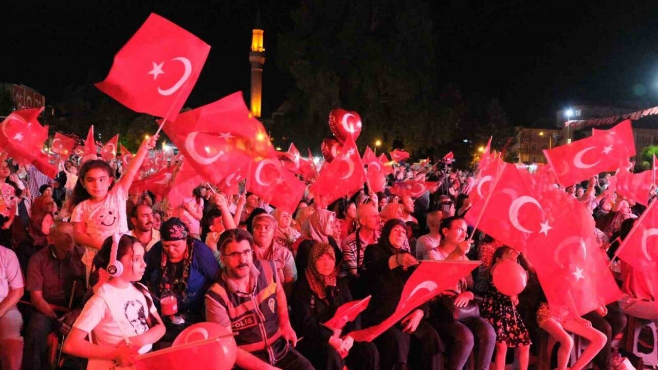 Karaman’da, 15 Temmuz Demokrasi ve Milli Birlik Günü’nün 9’uncu yıl dönümünde yüzlerce kişi ellerinde Türk bayrakları ile Aktekke 15 Temmuz Demokrasi Meydanı’nda toplandı.