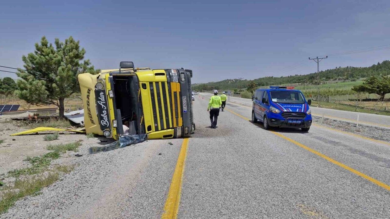 Karaman’da kontrolden çıkan tırın yol kenarına devrilmesi sonucu sürücüsü yaralandı.