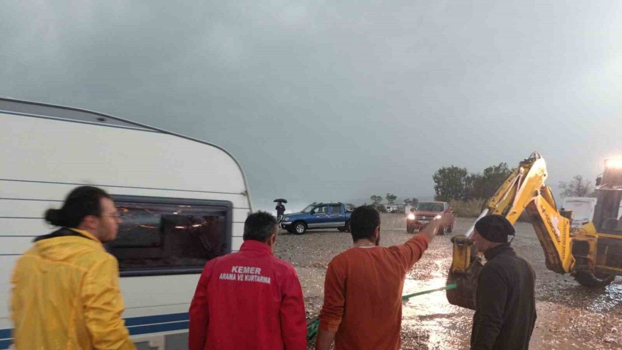 Antalya’nın Kemer ilçesinde şiddetli yağmur sırasında iki karavan denize sürüklendi. Karavanlardan birinde mahsur kalan Rus turistler, Kemer Belediyesi Afet İşleri Müdürlüğü ile KEMKUT ekipleri tarafından kurtarıldı.