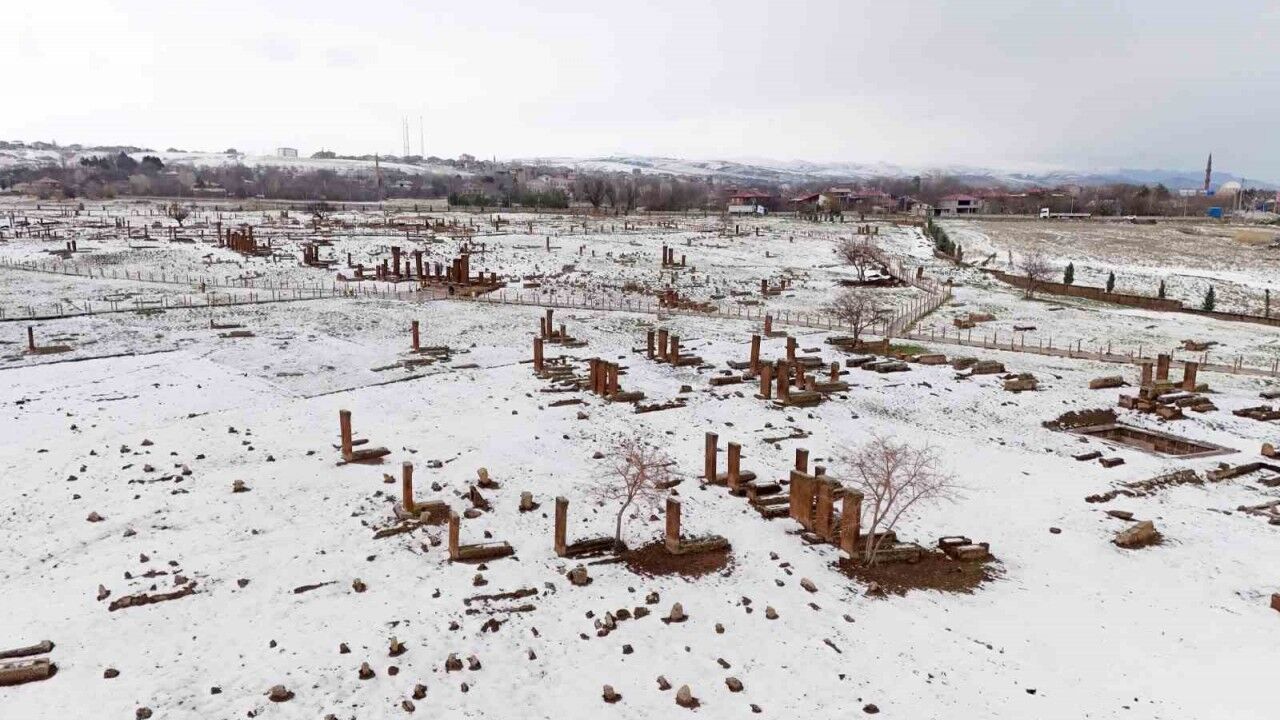 Doğu Anadolu Bölgesinde etkili olan kar yağışı hayatı olumsuz etkilerken, tarihi bir kent olan Bitlis’in Ahlat ilçesindeki Selçuklu Meydan Mezarlığı ise beyaz örtüye büründü.