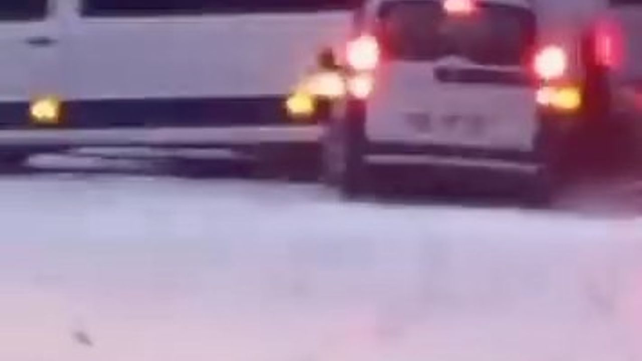 Kaza, Beyzade Efendi Bulvarı'nda meydana geldi. Edinilen bilgiye göre, sürücüleri ve plakaları öğrenilemeyen hafif ticari araç, kayganlaşan yolda duramayarak minibüse çarptı. Kazada yaralanan olmazken araçlarda maddi hasar meydana geldi. O anlar bir vatandaşın cep telefonu kamerasına yansıdı.