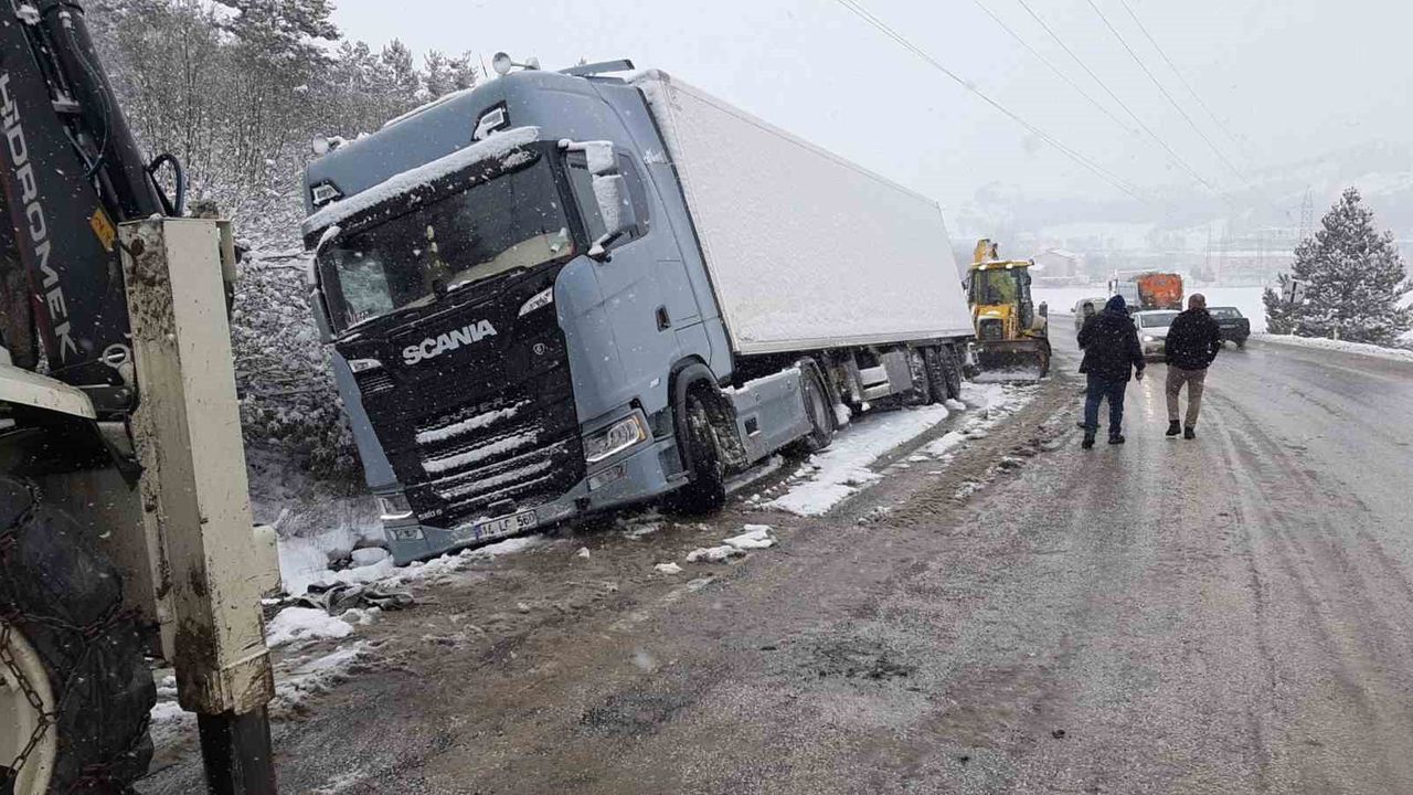 Kaza, yoğun kar yağışının etkisini sürdürdüğü Mudurnu-Nallıhan karayolu üzerinde meydana geldi. Edinilen bilgiye göre, yolda seyir halinde olan 14 LC 560 plakalı tır, rampaya geldiği sırada zeminin kaygan olması nedeniyle sürücüsünün direksiyon hakimiyetini kaybetmesi sonucu kontrolden çıktı. Savrulan tır, yol kenarındaki şarampole kayarak yan yattı.