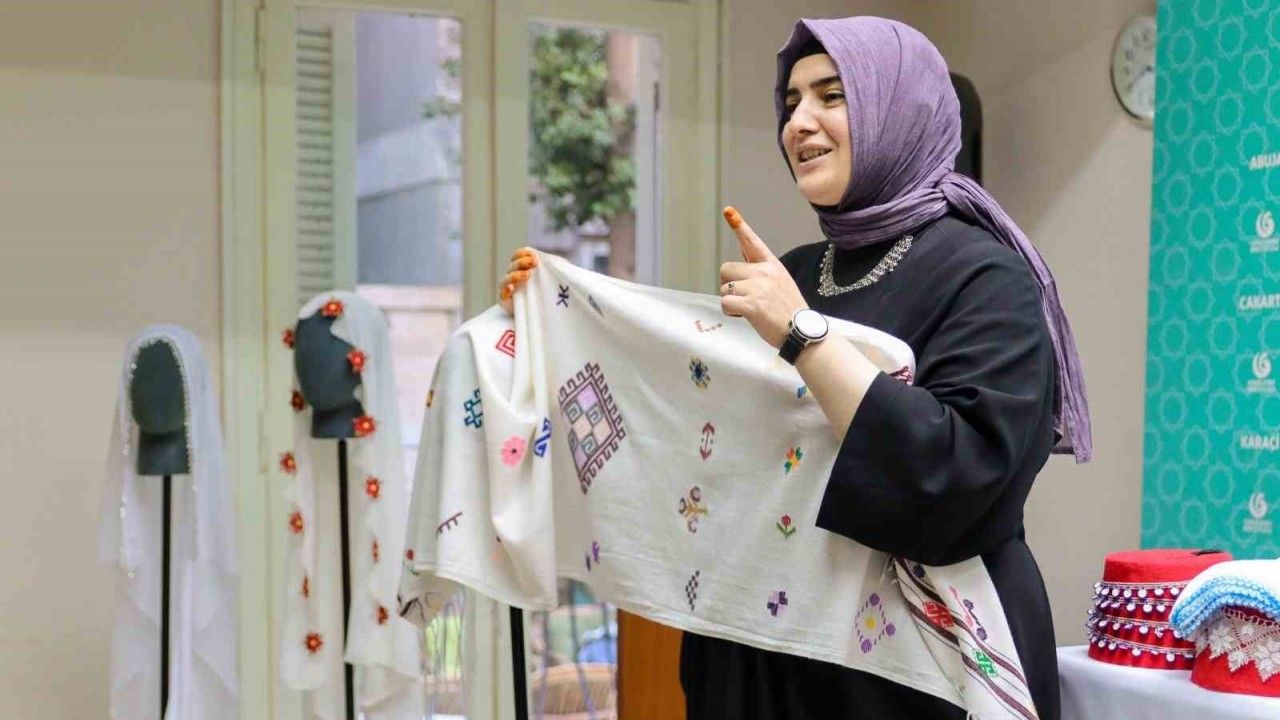Erzurum’un Olur ilçesine bağlı Ormanağzı Köyü’nde el emeğiyle dokunan geleneksel Karnavas Bezi, Kahire’de düzenlenen etkinlikte tanıtıldı.