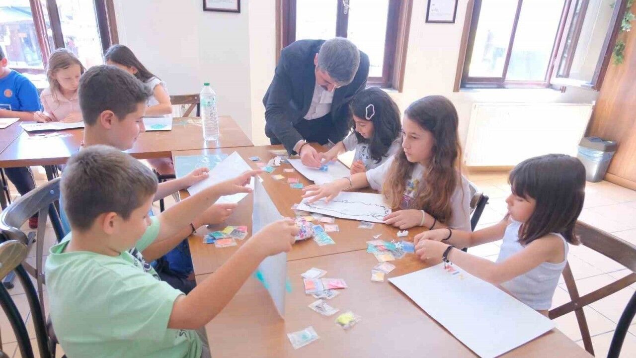 Hisar Tepesi girişinde yer alan Bolu Belediyesi Neyzen Tevfik Kültür Merkezi’nde bir hafta boyunca devam edecek atölyenin ilk gününde kum boyama etkinliği gerçekleştirildi. Cuma günü karne sevinci yaşayan 7-10 yaş grubu çocuklar, etkinliğe yoğun ilgi gösterdi. Yaklaşık 30 çocuk, görevliler eşliğinde kum boyaması yaparak keyifli vakit geçirdi. Bolu Belediye Başkan Yardımcısı Leyla Beykoz ile Kültür ve Sosyal İşler Müdürü Selçuk Türk de, çocuklarla yakından ilgilenerek kum boyama çalışmalarına yardımcı oldu.