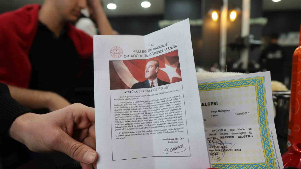 Elazığ'da erkek kuaförü Umut Diri, karne günü takdir ve teşekkür belgesi alan öğrenciler için ücretsiz tıraş kampanyası düzenledi. İki gün süren uygulama, öğrencilerden yoğun ilgi gördü. Amaçlarının çocukları motive etmek olduğunu belirten Kuaför Umut Diri, ' Karne günü takdir ve teşekkür belgesi alan öğrencilerimizi ücretsiz tıraş ediyoruz. Amacımız çocuklarımızın başarılarını küçük de olsa bir hediyeyle taçlandırmak. Eğitim çok önemli; bu çocuklar bizim geleceğimiz. Yüzlerinde bir tebessüm oluşuyorsa, bizim için en büyük kazanç budur' dedi.