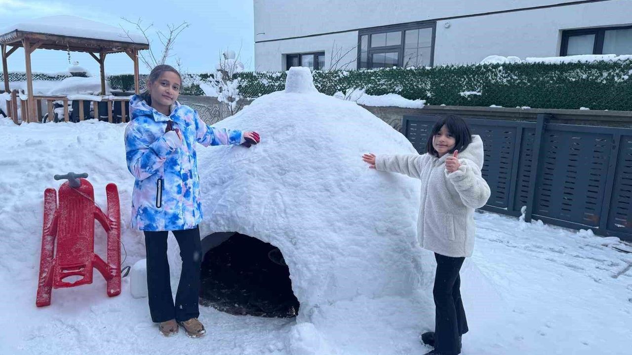 Kentte kar en çok çocuklara yaradı, mahalle arasında 'iglo' ev yapan çocuklar içerinde oyun oynarken, bir vatandaş ise traktörünün arkasına bağladığı lastik ile mahallenin yolunun karını temizledi.