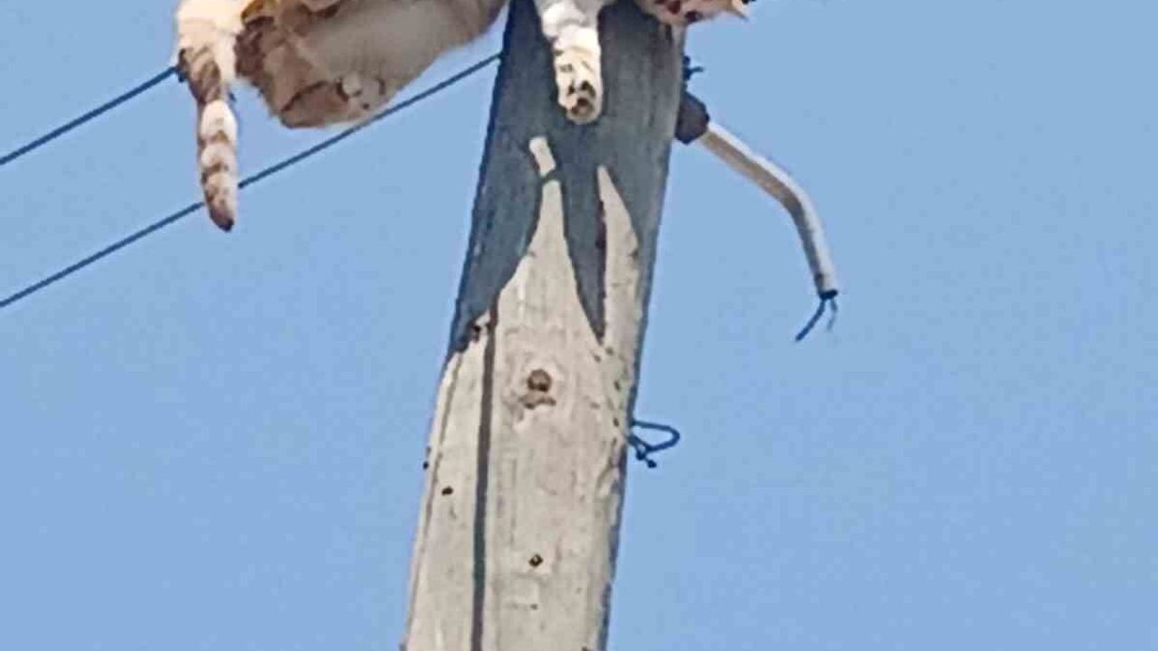 Kars’ın Digor ilçesi Karabağ köyünde tırmandığı elektrik direğinde mahsur kalan kediyi görenler durumu 112 Acil’e bildirdi. Köye gelen Araas elektrik ekipleri direklerdeki akımı keserken itfaiye ekipleri de, yangın merdiveni ile direkte mahsur kalan kediye ulaştı. Sıcakta uzun süre bekleyen kedi yapılan çalışmalarla kurtarıldı.
