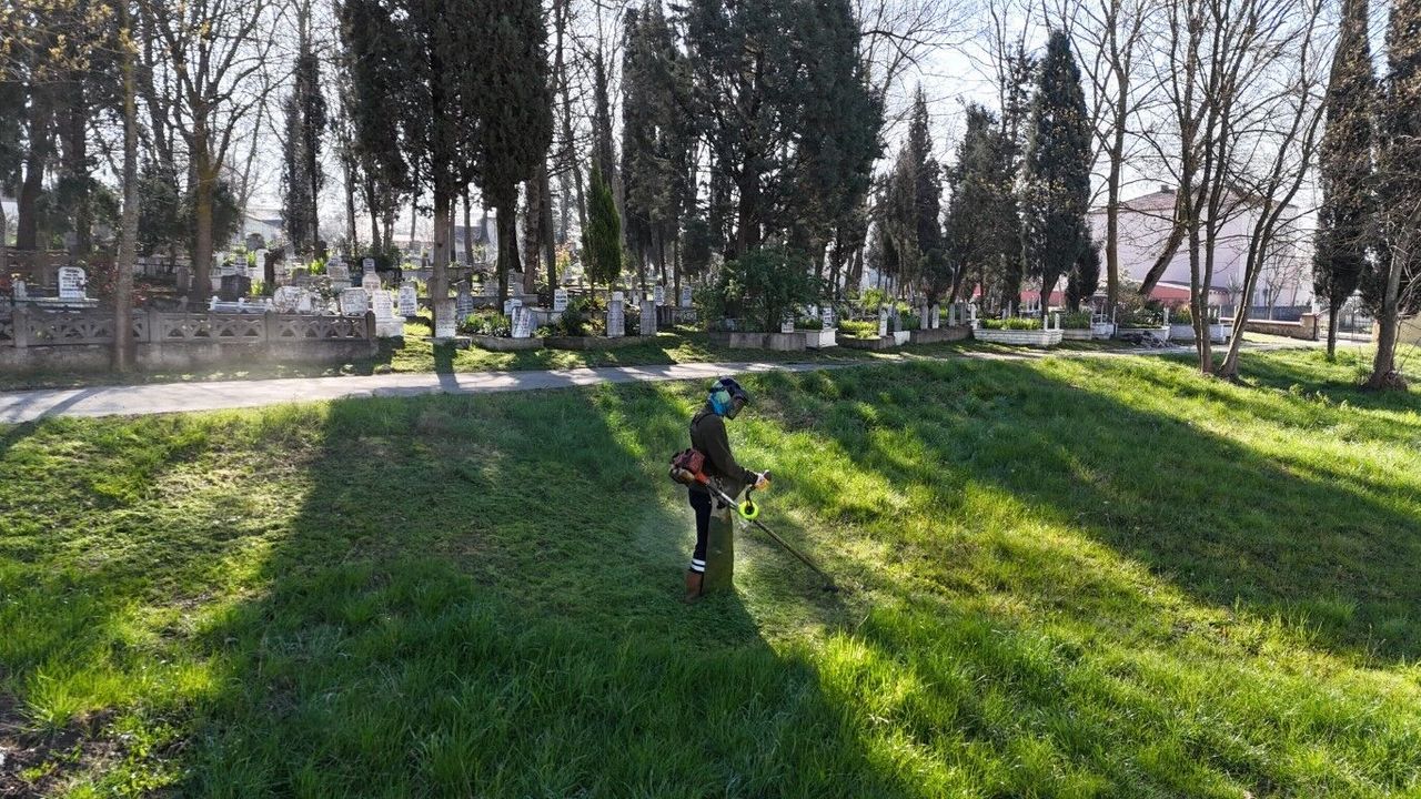 Çalışmalar kapsamında mezarlık alanlarında uzayan ve geçiş yollarını kapatan yabani otlar temizleniyor. Kuruyan ağaç dallarını budayan ve genel alan temizliği yapan ekiplerin, ilçedeki tüm mezarlıkları bayram öncesinde hazır hale getirmesi planlanıyor.